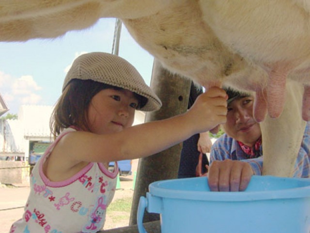 ジャージー牛「あんこちゃん」の乳しぼり体験